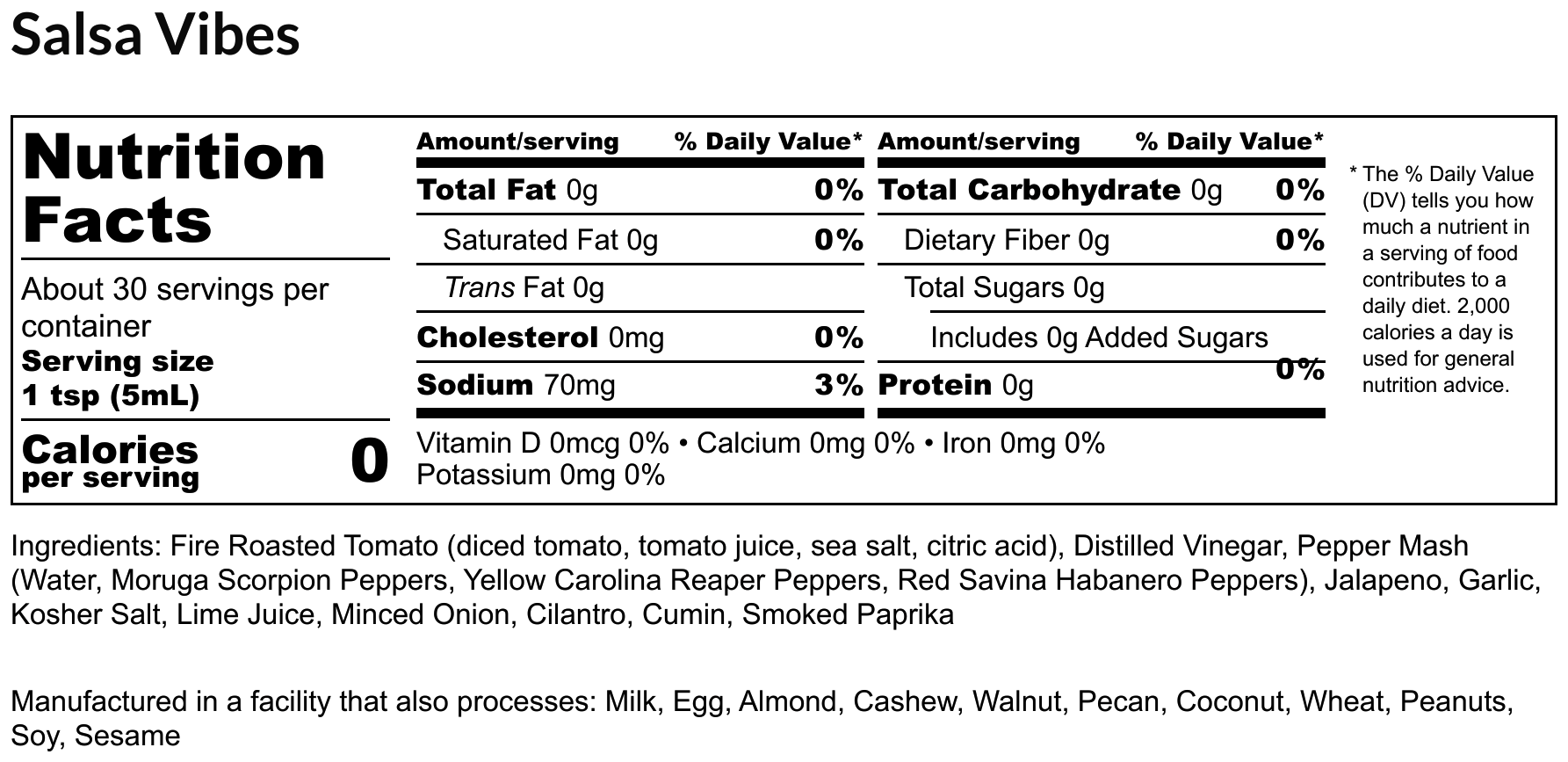 Salsa Vibes - Fire Roasted Tomato, Jalapeno, Habanero, Reaper, Cumin, Cilantro